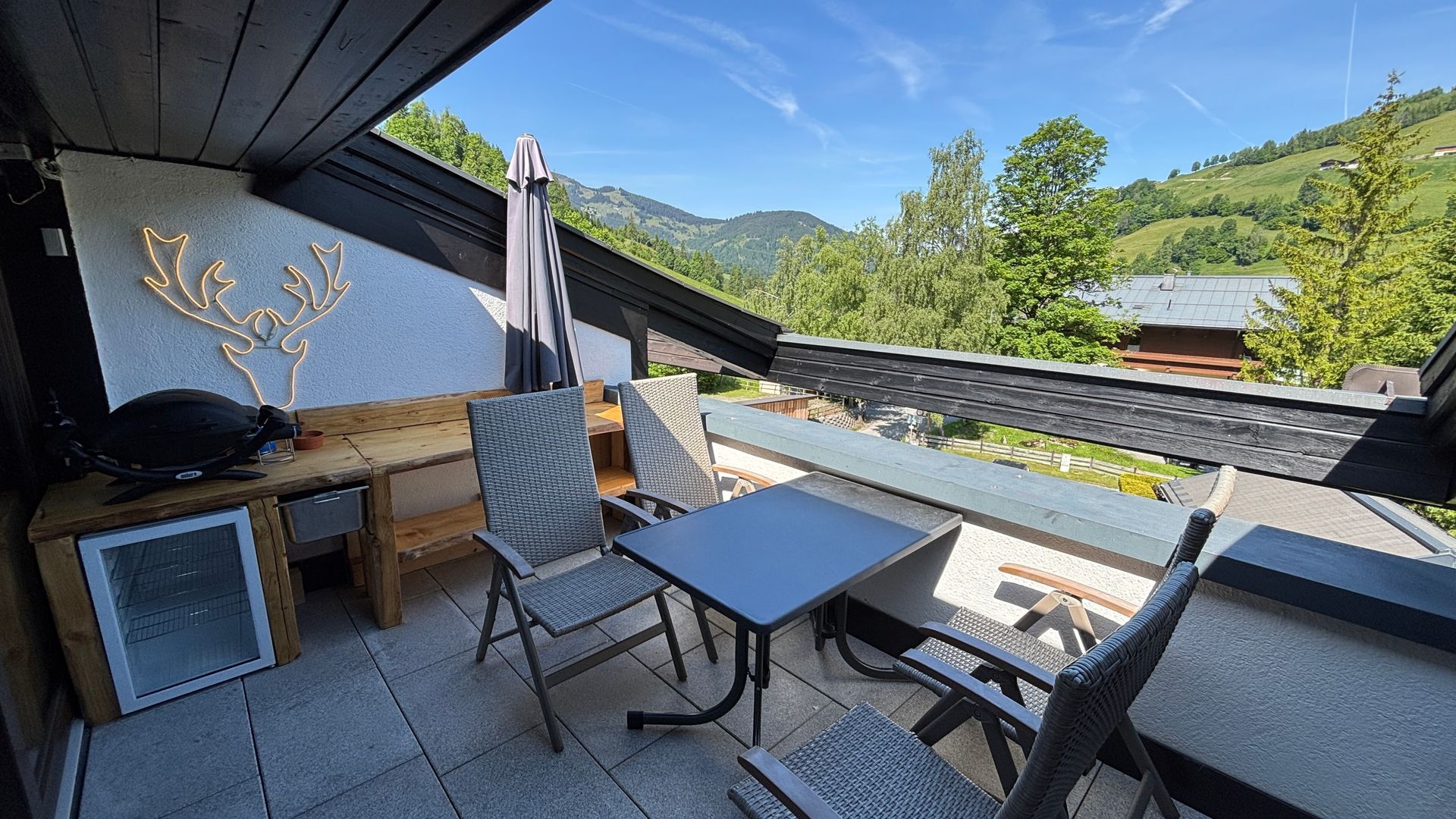 Das Appartement „Selbhorn“ im Dachgeschoss bietet über die Dachterrasse einen wundervollen Blick auf das Steinerne Meer und das Hochkönig-Massiv.
